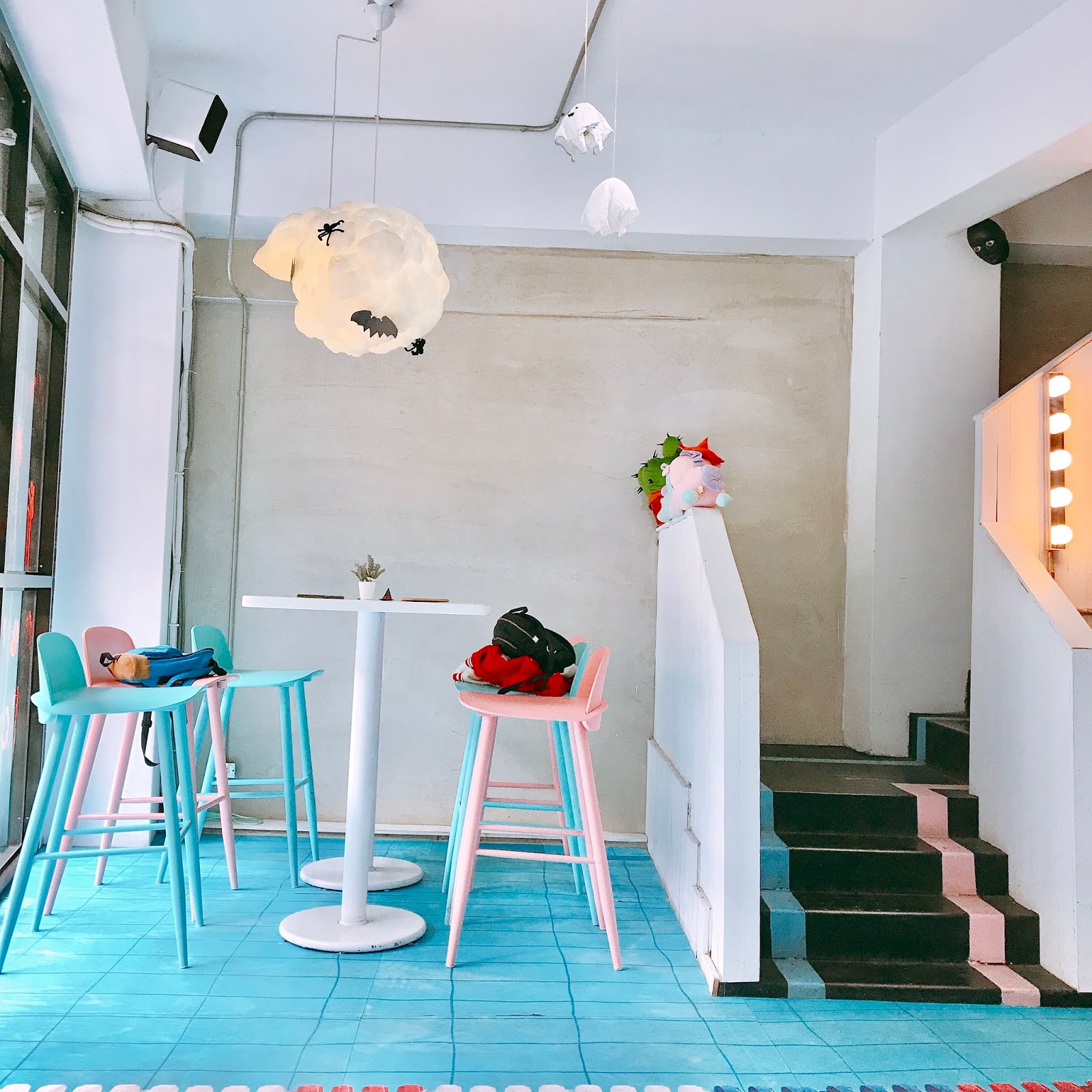 而座椅的部分採用粉藍色調基底排列排列